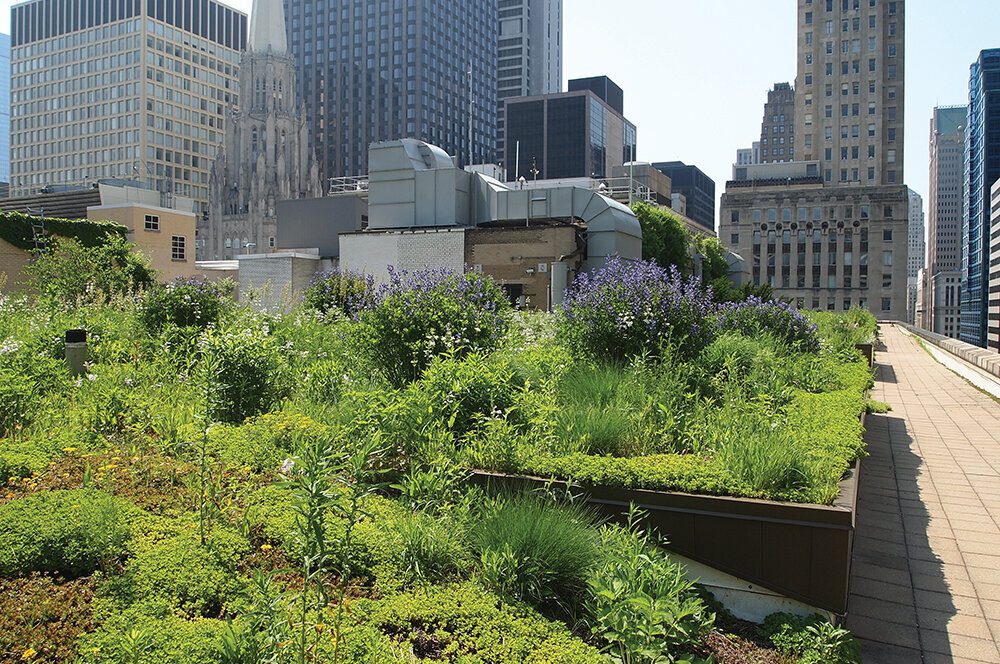 Справжнім надбанням і окрасою сучасного мегаполіса є “зелений дах”, розташований на 11-поверховій будівлі “City Hall”. У 2001 році за підтримки компанії “Conservation Design Forum, Inc.” було розроблено його проєкт. Перед початком будівництва провели безліч досліджень, під час яких вдалося з’ясувати, що “зелений дах” зможе регулювати перепади температури в будівлі, а також поглинати зайве тепло влітку і захищати від переохолоджень взимку. Таким чином, вдасться заощадити великі гроші на кондиціонуванні. Окрім цього, еко-система даху добре очищатиме дощову воду, “розвантажить” зливні системи та сприятиме покращенню міського повітря, що, безперечно, чинитиме позитивний вплив на екологію Чикаго.